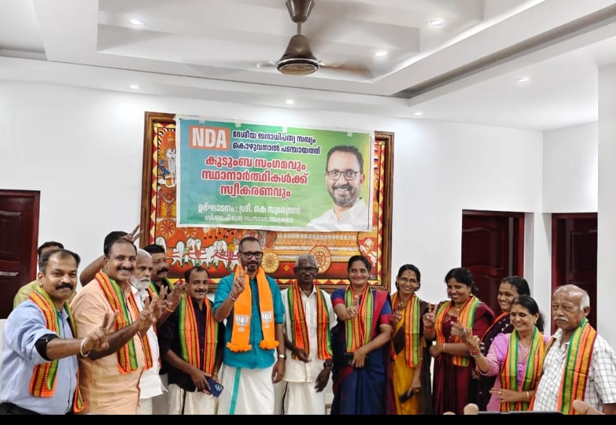 കൊഴുവനാൽ പഞ്ചായത്ത് 8ാം വാർഡ് കുടുംബ സംഗമവും പഞ്ചായത്തിലെ NDA സ്ഥാനാർത്ഥികൾക്ക് നൽകിയ സ്വീകരണവും ഉദ്ഘാടനം ചെയ്തു സംസാരിക്കുകയായിരുന്ന ശ്രീ. സുരേന്ദ്രൻ. ഇടതു വലതു മുന്നണികളുടെ ഇരട്ടത്താപ്പ് തിരിച്ചറിഞ്ഞ് വോട്ടവകാശം തികഞ്ഞ ശ്രദ്ധയോടെ വിനിയോഗിക്കണമെന്നും സുരേന്ദ്രൻ ആഹ്വാനം ചെയ്തു. കൊഴുവനാൽ പഞ്ചായത്തിൽ ബിജെപി അധികാരത്തിൽ എത്തിയാൽ ജനോപകാര പ്രദ മായ അനവധി കാര്യങ്ങൾ പൂർത്തികരിക്കും എന്ന് ഉറപ്പും നൽകി.