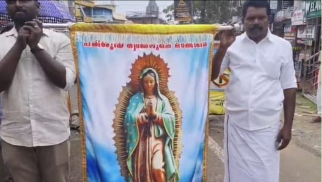 പാലാ ജനറൽ ആശുപത്രി പരിസരത്ത് നിന്നും വാദ്യമേളങ്ങളുടെയും ചെണ്ടമേളങ്ങളുടെയും ,അകമ്പടിയോടെ ഗ്വാഡലുപ്പെ മാതാവിൻ്റെ തിരുന്നാൾ പതാക പള്ളിയിലേക്കു പ്രദക്ഷിണമായാണ് കൊണ്ടുവന്നത്.ഭക്തർ ഗാഢലൂപ്പെ മാതാവിൻ്റെ ചെറിയ രൂപങ്ങൾ നെഞ്ചോട് ചേർത്ത് പിടിച്ചിരുന്നു.