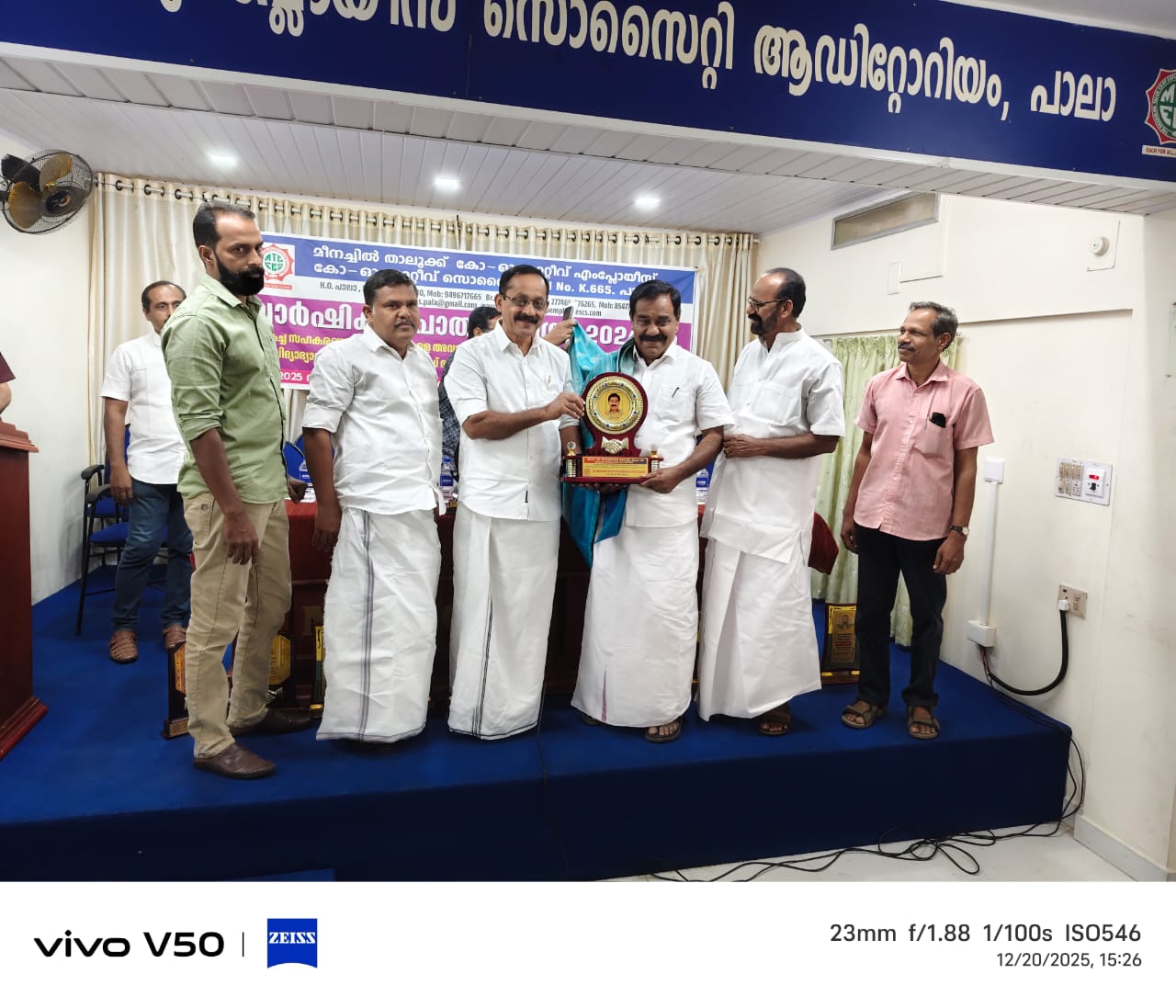 മീനച്ചിൽ താലൂക്ക് കോ ഓപ്പറേറ്റീവ് എംപ്ളോയിസ് കോ ഓപ്പറേറ്റീവ് സൊസൈറ്റി യുടെ റാർഷിക പൊതുയോഗത്തിലാണ് സൊസൈറ്റി ഏർപ്പെടുത്തിയ അവാർഡ് പാലാ നഗരസഭ ചെയർമാൻ തോമസ് പീറ്ററിൻ്റെ പക്കൽ നിന്നും മത്തച്ചൻ ഉറുമ്പ്കാട്ട് ഏറ്റ് വാങ്ങിയത്.