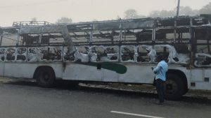 മലപ്പുറത്തു നിന്നും ഗവിയിലേക്ക് പോയ കെഎസ്ആര്‍ടിസിയുടെ ഉല്ലാസ യാത്ര ബസ് പൂര്‍ണമായും കത്തിനശിച്ചു