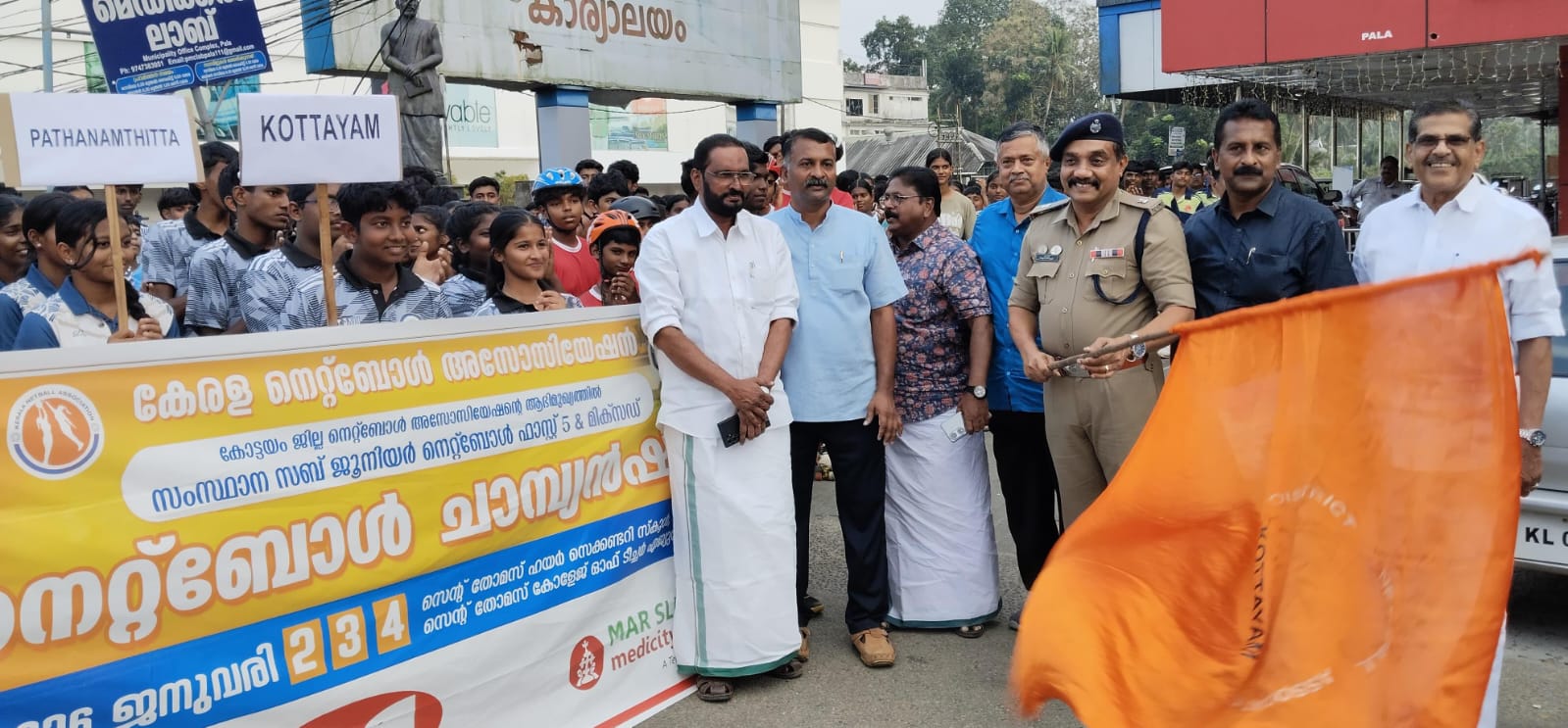 പാലായിൽ നടക്കുന്ന സംസ്ഥാന ജൂനിയർ നെറ്റ് ബോൾ ചമ്പ്യൻ ഷിപ്പിനു മുന്നോടിയായി വിളംബര റാലി നടന്നു .പാലാ ഡി വൈ എസ് പി ;കെ സദൻ ഫ്ലാഗ് ഓഫ് നിർവഹിച്ചു.ലഹരി ഉപയോഗത്തിനെതിരെ യുവതയുടെ സന്ദേശമാകണം ഇത്തരത്തിലുള്ള കായീക വിനോദങ്ങളെന്ന് ഡി വൈ എസ് പി ;കെ സദൻ ഉദ്ബോധിപ്പിച്ചു.