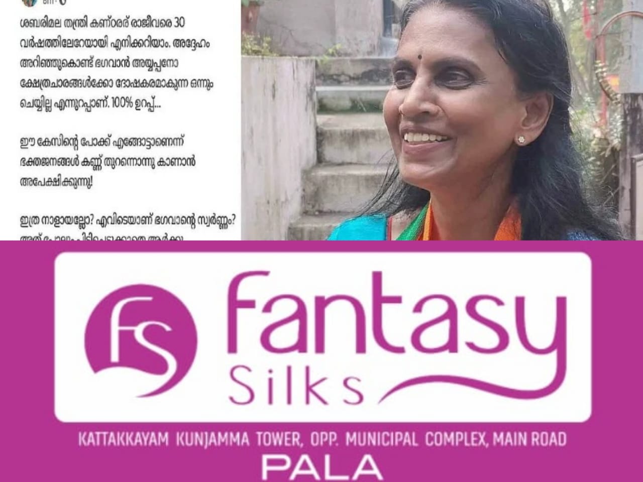 കേസിന്റെ പോക്കില് ഉള്പ്പെടെ സംശയം പ്രകടപ്പിക്കുന്ന നിലയിലായിരുന്നു പോസ്റ്റ്. കേസിന്റെ പോക്ക് എങ്ങോട്ടാണെന്ന് ഭക്തജനങ്ങള് കണ്ണ് തുറന്നൊന്നു കാണാന് അപേക്ഷിക്കുന്നു. അന്വേഷണം ആരംഭിച്ച് നാളുകളായിട്ടും എവിടെയാണ് ഭഗവാന്റെ സ്വര്ണ്ണം? അത് പോലും പിടിച്ചെടുക്കാതെ ആര്ക്കു വേണ്ടിയാണ്, ആചാരലംഘനം നടത്തിയെന്ന് പറഞ്ഞുള്ള ഈ അറസ്റ്റ് എന്നുമായിരുന്നു പോസ്റ്റിലെ ഉള്ളടക്കം.