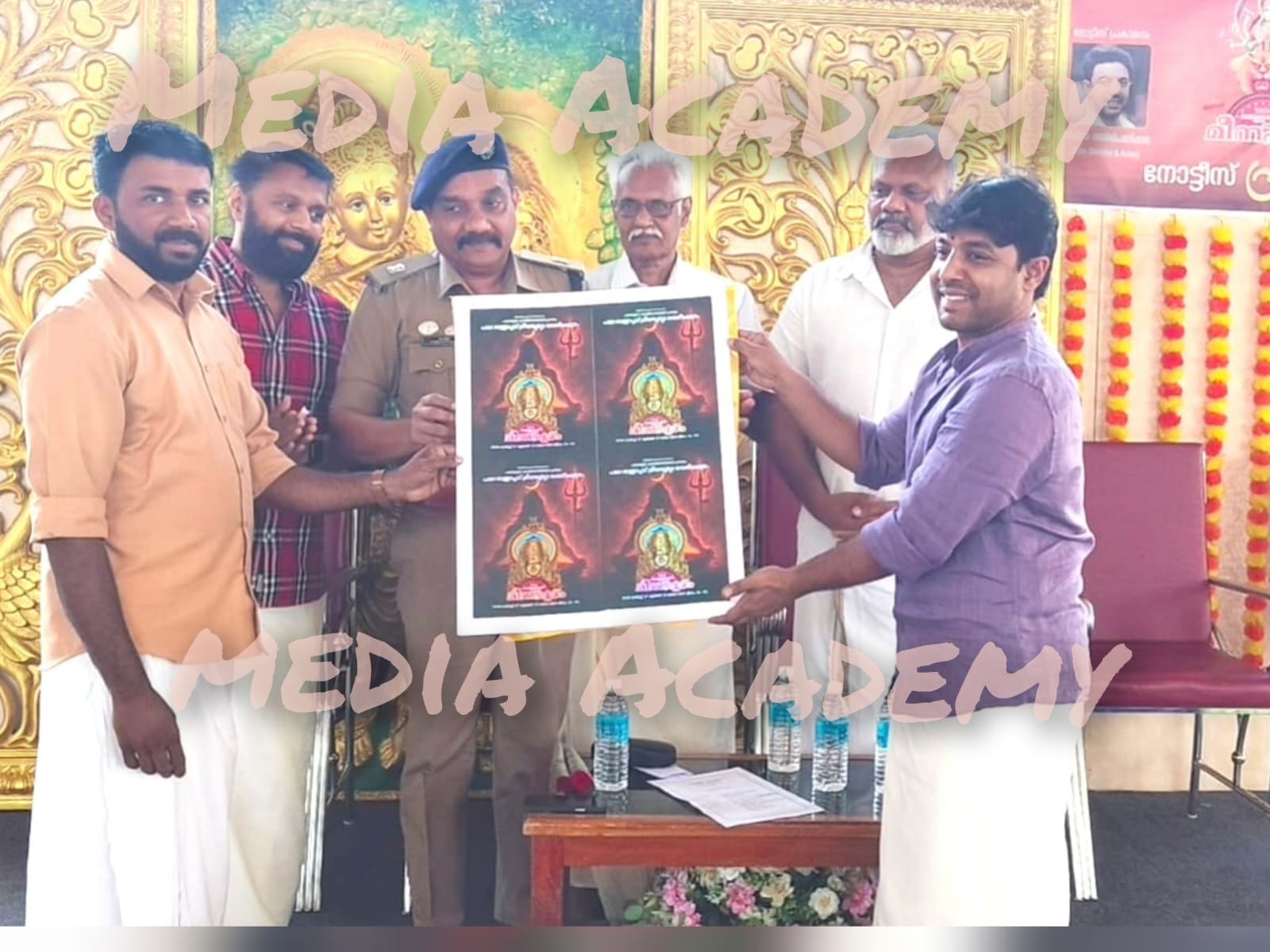 നടനും ;സംവിധായകനും ; എഴുത്തുകാരനുമായ നിഖിൽ രഞ്ജിപണിക്കർ നോട്ടീസ് പ്രകാശനം ചെയ്തു.വർഷത്തിൽ രണ്ടു തവണയെങ്കിലും ഞാൻ വെള്ളപ്പാദാമ്മയെ തൊഴാനായി ഇവിടെ വരാറുണ്ടെന്ന് നിഖിൽ പറഞ്ഞു .ഡി വൈ എസ പി -കെ സദനെ നിഖിൽ രഞ്ജിപണിക്കരും ;നിഖിൽ രഞ്ജിൻ പണിക്കാരെ കെ സദനും ഷാൾ അണിയിച്ചും ,മൊമെന്റോ നൽകിയും ആരാധിച്ചു .