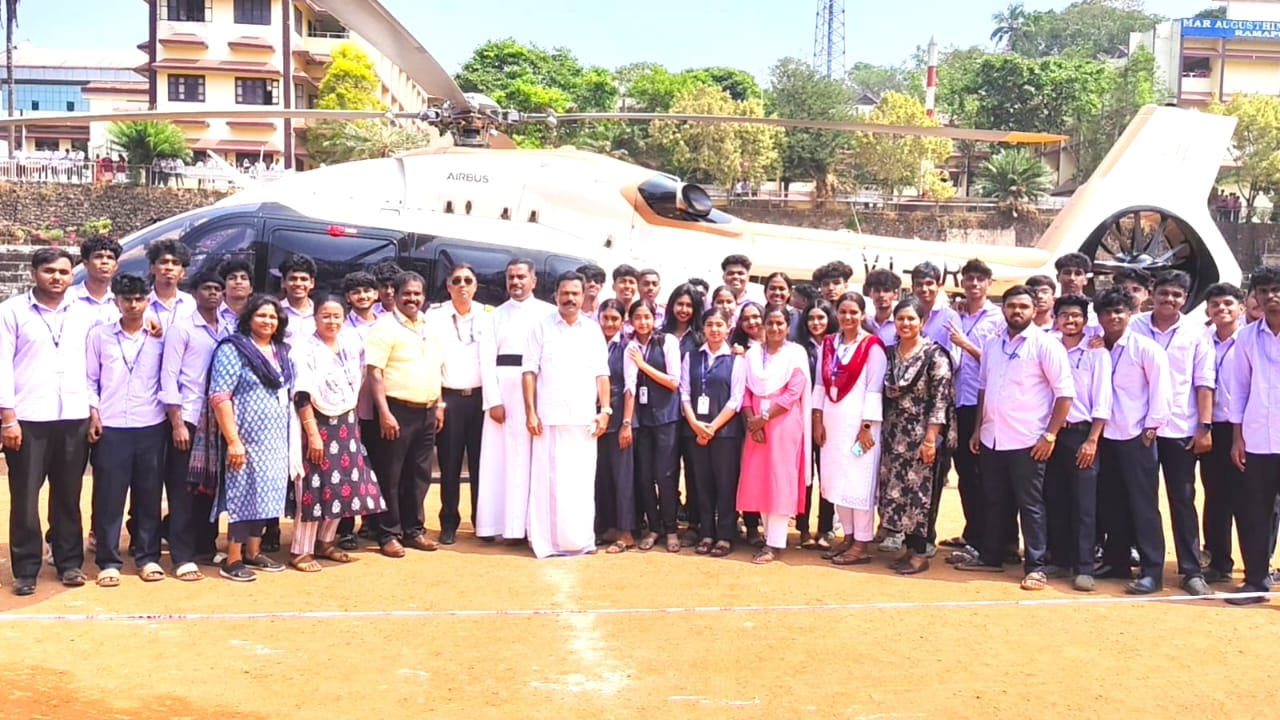 ഇന്നുച്ചയ്ക്ക് പന്ത്രണ്ടോടെയാണ് യുസഫലിയും പരിവാരങ്ങളും രാമപുരം സെക്കണ്ടറി സ്കൂൾ മൈതാനത്ത് ലാൻഡ് ചെയ്തത് .അന്തരിച്ച തൻ്റെ ജീവനക്കാരനായജോജോ പുത്തൻപുരയ്ക്കൽ ( 52 ) ന് ആദരാഞ്ജലികൾ അർപ്പിക്കാനാണ് എത്തിയത്.