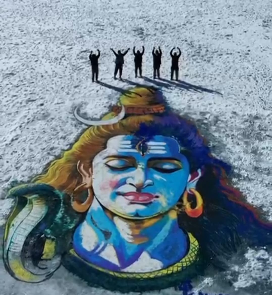 ലേ ലാഡാക്കിലെ കൈലാസ പർവ്വത താഴ്വരകളിൽ കൊടുംതണുപ്പിൽ ഐസുകട്ടയായി മാറിയ പ്രതലത്തിലാണ് ഡാവിഞ്ചി സുരേഷിന്റെ തൊണ്ണൂറ്റി ഏട്ടാമത്തെ മീഡിയമായ ഐസുകട്ടയിലെ പെയിന്റിംഗ് ശിവരാത്രി ആഘോഷവുമായി ബന്ധപ്പെട്ടു 70 അടി വലുപ്പത്തിൽ പൂർത്തീകരിച്ചത്