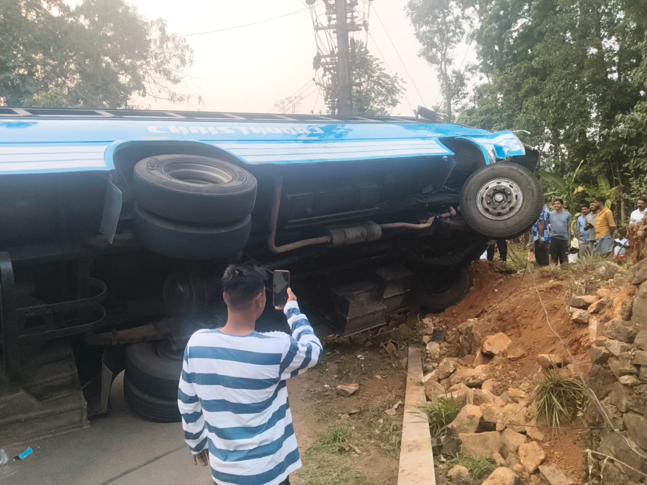 ഉടനെ തന്നെ പോലീസും, ഫയർഫോഴ്സും സ്ഥലത്തെത്തി .സംഭവമറിഞ്ഞ് നാട്ടുകാരെല്ലാം തടിച്ചു കൂടിയത് പോലീസിനെ നന്നായി വിഷമിപ്പിച്ചെങ്കിലും പോലീസ് സംയമനം പാലിച്ചു. സാഹസ പ്രിയർ പോലീസിനോടും ഫയർഫോഴ്സിനുമൊപ്പം കൂടി JCB കൊണ്ട് വന്ന് ബസ് നേരേയാക്കാനാക്കെ സഹായിച്ചു.