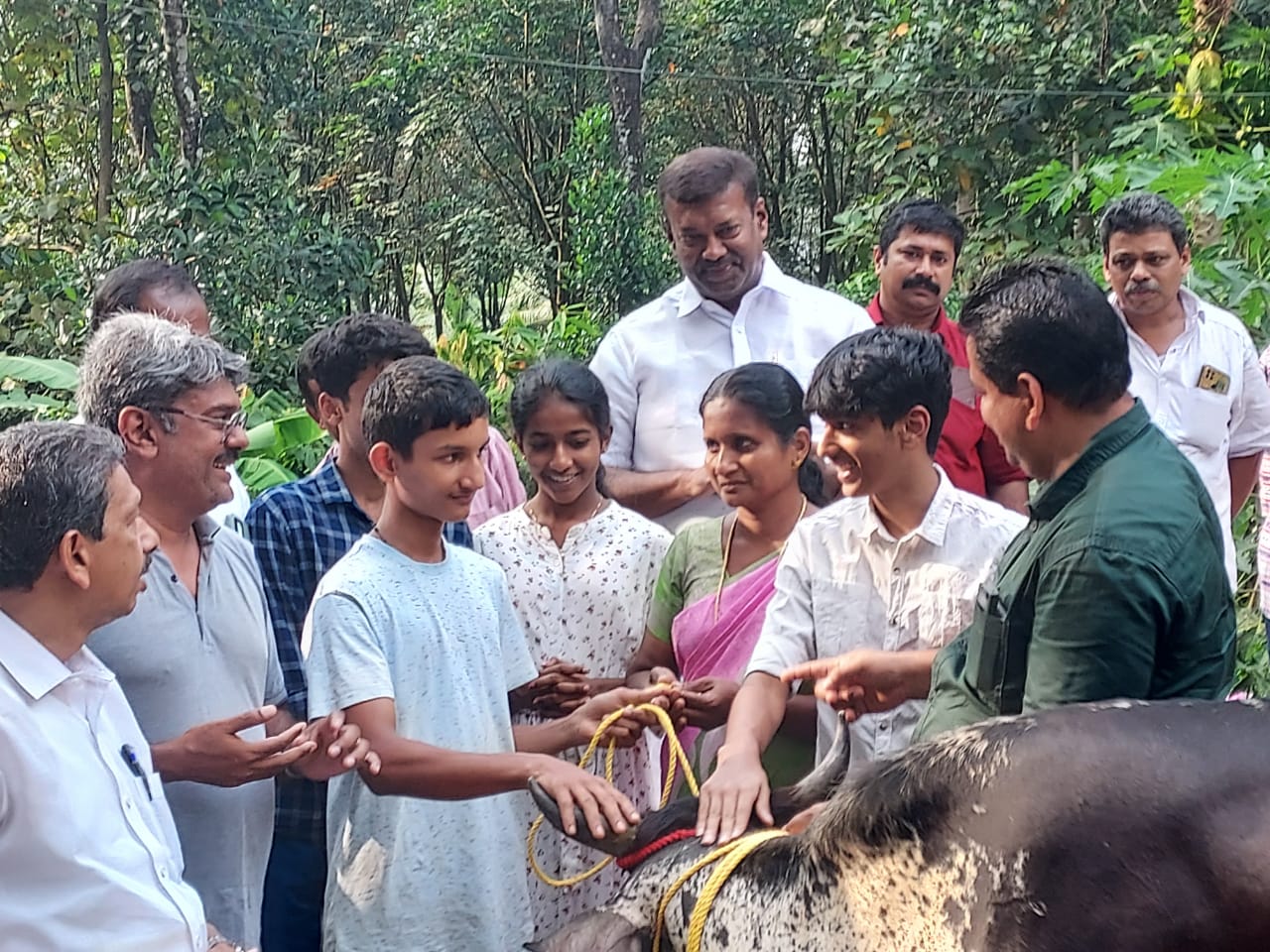 13 പശുക്കൾ ചത്തതോടെ ദുരിതത്തിലായ കുട്ടികർഷകൻ മാത്യു ബെന്നിക്കാണ് പുതുവൽസര സമ്മാനമായി പശുവിനെ നൽകിയത്. ഒട്ടേറെ സഹായങ്ങളും വാഗ്ദാനങ്ങളും ലഭിച്ചെങ്കിലും തന്റെ തൊഴുത്തിലേക്ക് ആദ്യം കിട്ടിയ പശുവിനെ ഏറെ സന്തോഷത്തോടെയാണ് മാത്യു ബെന്നി സ്വീകരിച്ചത്.അപ്പൻ മരിച്ചതോടെയാണ് മക്കൾ പശുവളർത്തലിലേക്ക് തിരിഞ്ഞത്.