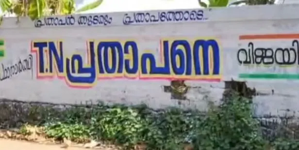 തൃശ്ശൂർ വെങ്കിടങ്ങിലാണ് പ്രവർത്തകർ പ്രതാപനെ വിജയിപ്പിക്കാൻ ചുവരെഴുത്ത് നടത്തിയത്. വാർത്ത പുറത്തുവന്നതിന് പിന്നാലെയാണ് പേര് മായ്ച്ചുകളഞ്ഞത്.