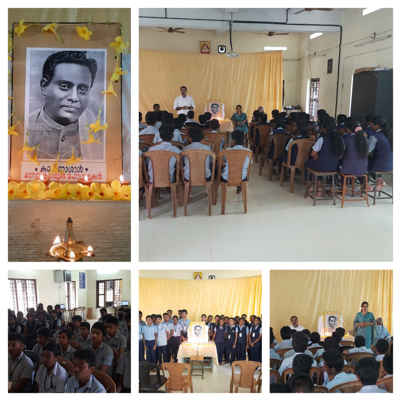 കുമാരനാശാന്റെ ഛായാചിത്രത്തിൽ പുഷ്പാർച്ചന നടത്തിയശേഷം ഹെഡ് മാസ്റ്റർ സോണി തോമസ്, അധ്യാപകരായ മിനിമോൾ ജേക്കബ് , സോജൻ തോമസ്, സിസ്റ്റർ എൽസി മാത്യു വിദ്യാർഥികളായ ജുവാൻ എസ് കുമ്പുക്കൻ, ഗൗരി ശ്രീകുമാർ എന്നിവർ പ്രസംഗിച്ചു. പരിപാടികൾക്ക് ജസ്റ്റിൻ എബ്രാഹം, ഷൈനി M I, ഏലിയാമ്മ ജോസഫ് , സിബി ഡൊമിനിക്, വിദ്യാർഥികളായ അലൻ മാത്യു, അഭിനവ് V S, ശ്രേയസ് P R എന്നിവർ നേതൃത്വം നൽകി.