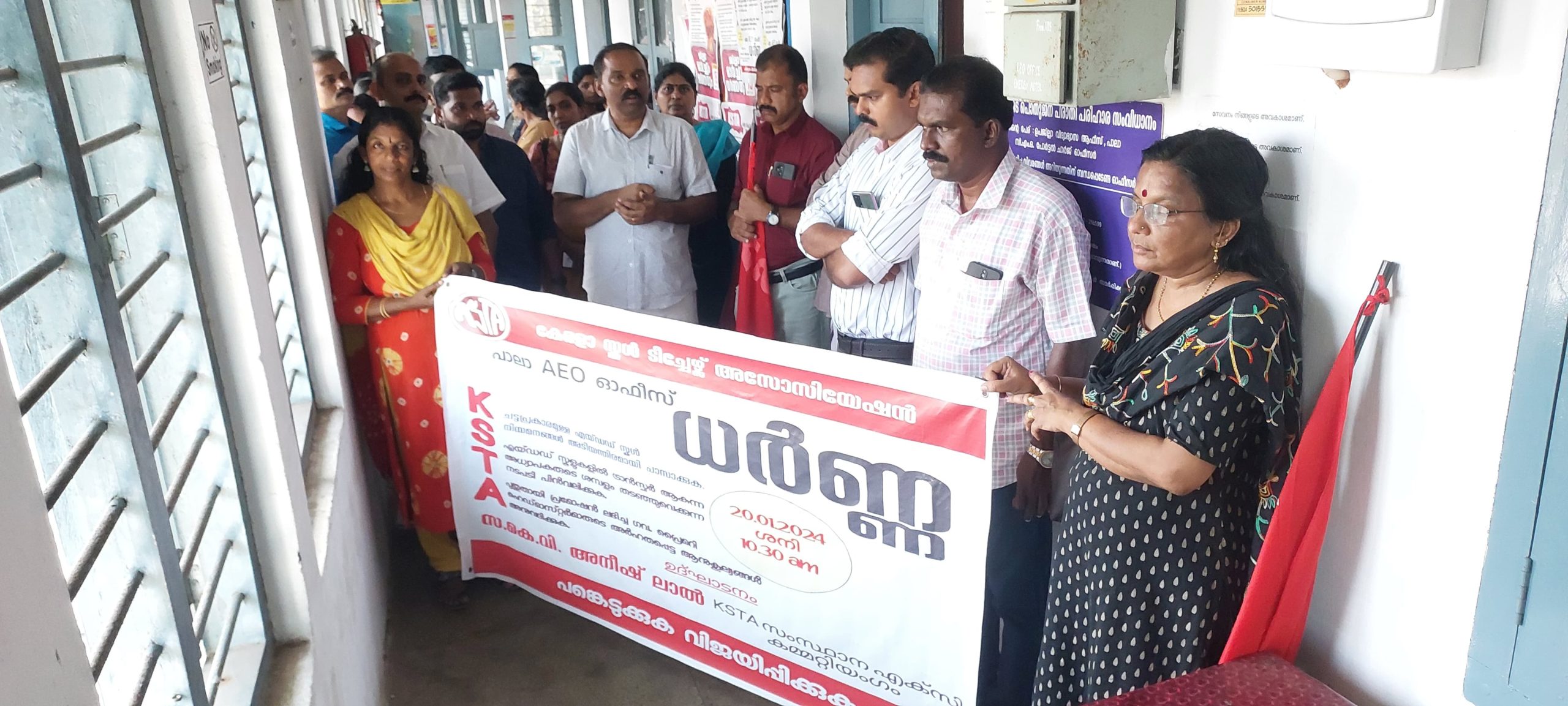 പാലാ: വ്യക്തമായ സർക്കാർ ഉത്തരവുകൾ ഉണ്ടായിട്ടും എയ്ഡഡ് സ്കൂൾ നിയമനങ്ങൾക്ക് അംഗീകാരം നൽകുന്നതിൽ കാലതാമസം വരുത്തുന്ന ഉദ്യോഗസ്ഥർക്കെതിരെ സർക്കാർ കർശന നടപടി സ്വീകരിക്കണമെന്ന് കെ.എസ്.ടി.എ സംസ്ഥാന എക്സിക്യൂട്ടീവ് അംഗം കെ.വി.അനീഷ് ലാൽ ആവശ്യപ്പെട്ടു. എയ്ഡഡ് സ്കൂൾ നിയമനങ്ങൾക്ക് അംഗീകാരം നൽകുന്നതിലെ കാലതാമസത്തിനെതിരെ കെ.എസ്.ടി എ യുടെ നേതൃത്വത്തിൽ പാലാ ഉപജില്ലാ വിദ്യാഭ്യാസ ഓഫീസിനു മുൻപിൽ നടത്തിയ ധർണ്ണ ഉദ്ഘാടനം ചെയ്യുകയായിരുന്നു അദ്ദേഹം.