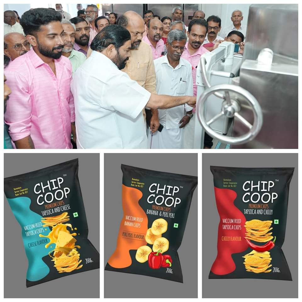 കോട്ടയം :കേരളത്തിലെ സഹകരണ സംഘങ്ങളുടെ ഉൽപന്നങ്ങൾ അന്തർദേശീയ തലത്തിലേക്കും വ്യാപിക്കപ്പെടുകയാണ്. വിദേശ വിപണിയെ ലക്ഷ്യം വെച്ച് ഏത്തക്കായ, മരച്ചീനി എന്നിവയിൽ നിന്നും വാക്വം ഫ്രൈഡ് ചിപ്സ് ഉല്പാദിപ്പിച്ച് കയറ്റുമതി ആരംഭിക്കാൻ തയ്യാറെടുക്കുകയാണ് കുന്നുകര സഹകരണ ബാങ്ക്. 8% ത്തിൽ താഴെ മാത്രം ഓയിൽ കണ്ടൻ്റുള്ള വിവിധ രുചികളിലുള്ള ഉൽപ്പന്നങ്ങളാണ് “chip-coop” എന്ന ബ്രാൻഡിൽ ഫുള്ളി ഓട്ടോമേറ്റഡ് ആയ മെഷീനറി ഉപയോഗിച്ച് ആദ്യഘട്ടത്തിൽ ഉൽപ്പാദിപ്പിക്കുന്നത്.