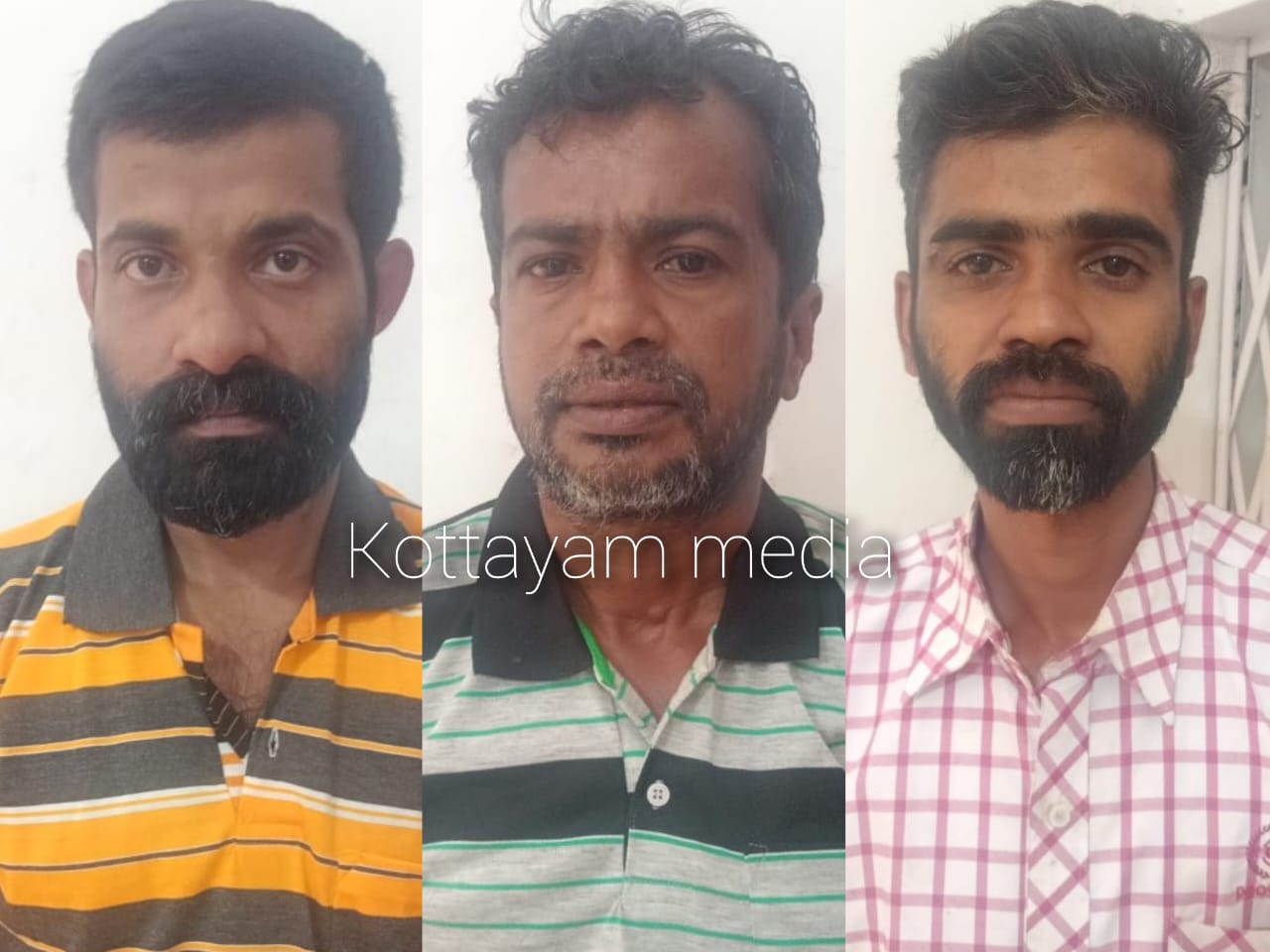 മോഷണമുതൽ പോലീസ് കണ്ടെടുക്കുകയും ചെയ്തു. പാമ്പാടി സ്റ്റേഷൻ എസ്.എച്ച്.ഓ സുവർണ്ണകുമാർ, എസ്.ഐമാരായ ഹരീഷ് എം.സി, ശ്രീരംഗൻ, ജോമോൻ, സി.പി.ഓ മാരായ സുരേഷ് എം.ജി, ജയകൃഷ്ണൻ. ആർ, സുനിൽ പി.സി, ജയകൃഷ്ണൻ നായർ, വിശ്വനാഥൻ, സോമൻ പിള്ള എന്നിവർ ചേർന്നാണ് ഇവരെ അറസ്റ്റ് ചെയ്തത്. കോടതിയിൽ ഹാജരാക്കിയ മൂവരെയും റിമാണ്ട് ചെയ്തു.