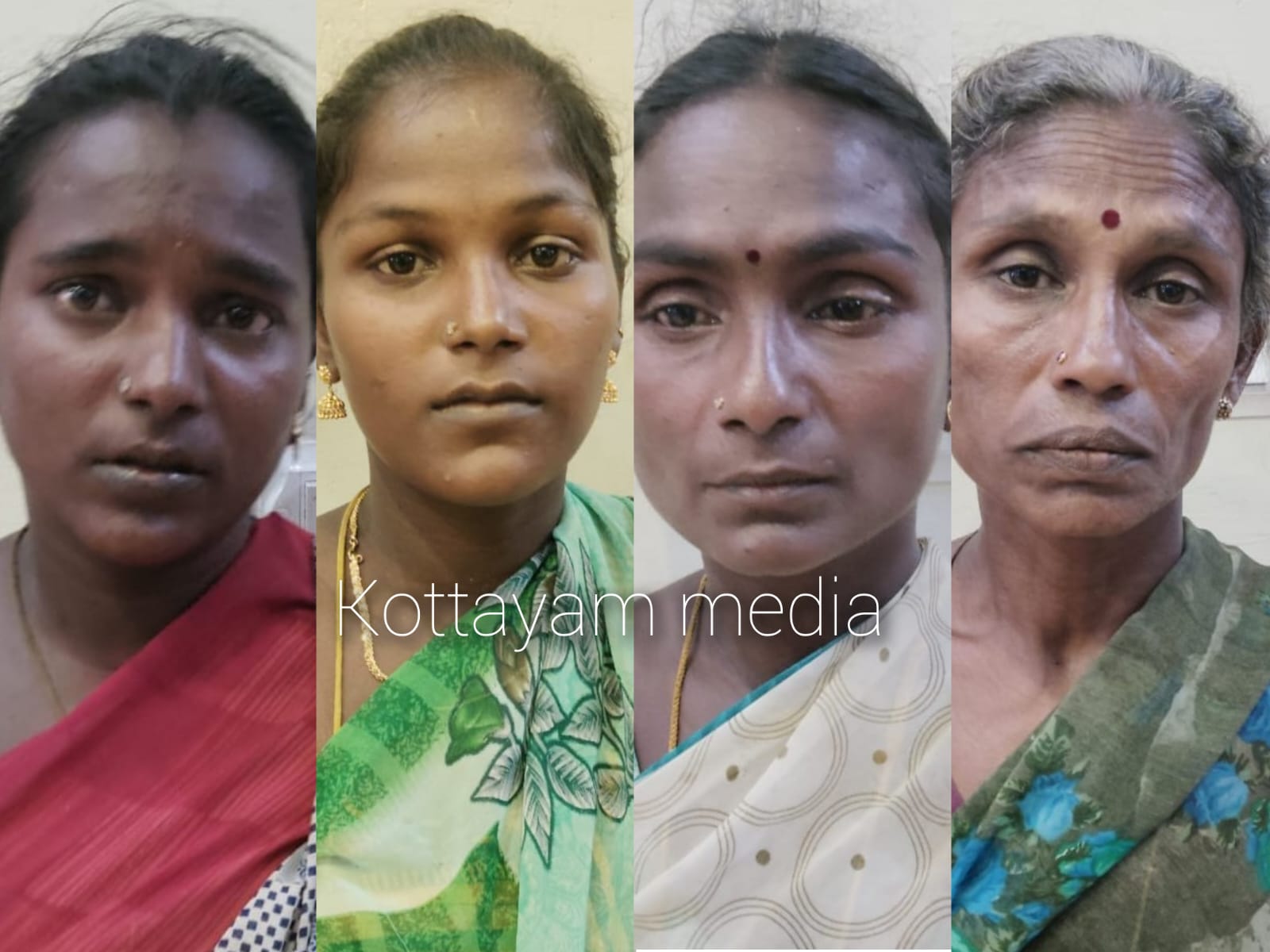പള്ളിക്കത്തോട് : വീടിനുള്ളിൽ സൂക്ഷിച്ചിരുന്ന ആക്രി സാധനങ്ങൾ മോഷ്ടിച്ച കേസിൽ തമിഴ്നാട് സ്വദേശിനികളായ നാല് പേരെ പോലീസ് അറസ്റ്റ് ചെയ്തു. തമിഴ്നാട് തേനി സ്വദേശിനികളായ പൊന്നമ്മാൾ ശെൽവം (49), അഞ്ജലി.എം (35), നാഗജ്യോതി(22), തമിഴ്നാട് തിരുച്ചിറപ്പള്ളി സ്വദേശിനിയായ ചിത്ര (28) എന്നിവരെയാണ് പള്ളിക്കത്തോട് പോലീസ് അറസ്റ്റ് ചെയ്തത്.