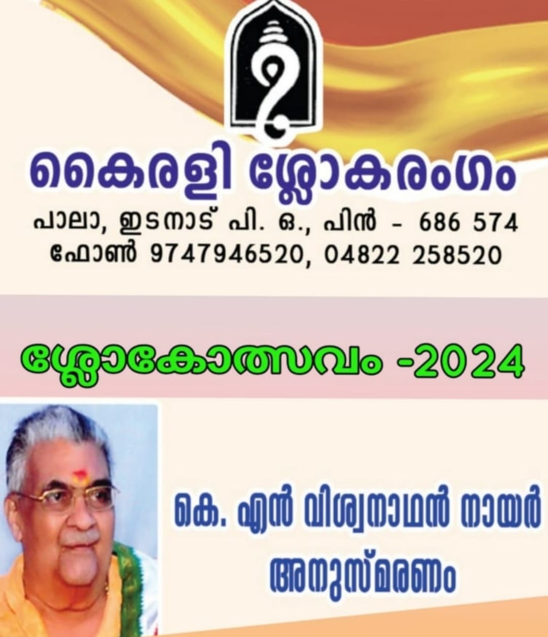 രാധാകൃഷ്ണൻ,മുരളീകൃഷ്ണൻ,ദീപേഷ് തുടങ്ങിയവരായിരിക്കും. തികച്ചും സൗജന്യമായ ഈ അക്ഷരകലാ പരിശീലനത്തിൽ പങ്കെടുക്കുവാൻ ആഗ്രഹിക്കുന്നവർ കൈരളീശ്ലോകരംഗം പ്രസിഡന്റ് ശ്രീ കെ. എൻ ജയചന്ദ്രനെയോ (9747946520), സെക്രട്ടറി ഡോ. ആര്യാംബികയെയോ (9446582617) അറിയിക്കുവാൻ താത്പര്യപ്പെടുന്നു.