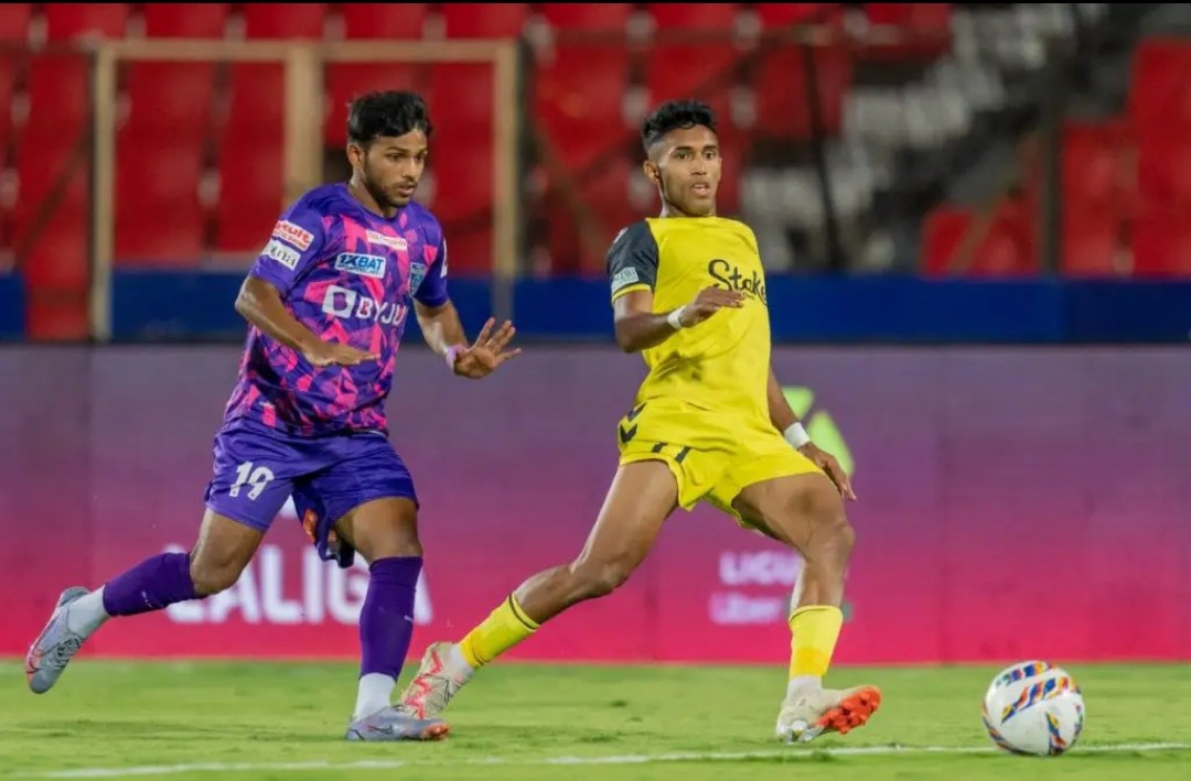 ഇന്ന് ഹൈദരബാദിൽ നടന്ന മത്സരത്തിൽ കേരള ബ്ലാസ്റ്റേഴ്സ് മുഹമ്മദ് ഐമന്റെ ഗോളിലാണ് ലീഡ് എടുത്തത്. മത്സരത്തിന്റെ 34ആം മിനിറ്റില് ആയിരുന്നു ഗോള്. വലതു വിങ്ങില് നിന്ന് സൗരവ് നല്കിയ ഒരു ക്രോസ് ഹെഡ്ഡറിലൂടെ മുഹമ്മദ് ഐമൻ വലയിലാക്കുകയായിരുന്നു. സീസണിൽ ഐമന്റെ ആദ്യ ഗോളായിരുന്നു ഇത്.
