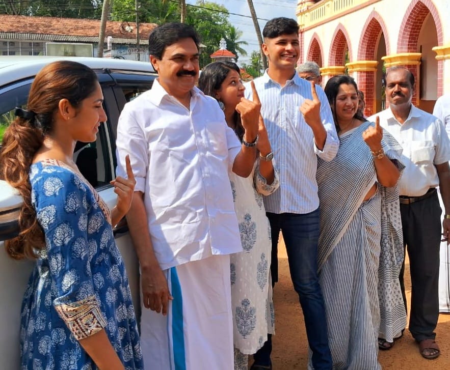 ഭാര്യ നിഷ, മക്കളായ പ്രിയങ്ക, റിതിക, കുഞ്ഞു മാണി എന്നിവരും ഒപ്പമെത്തിയിരുന്നു.മകൻ കുഞ്ഞു മാണിക്ക് ഇത് കന്നി വോട്ടായിരുന്നു.