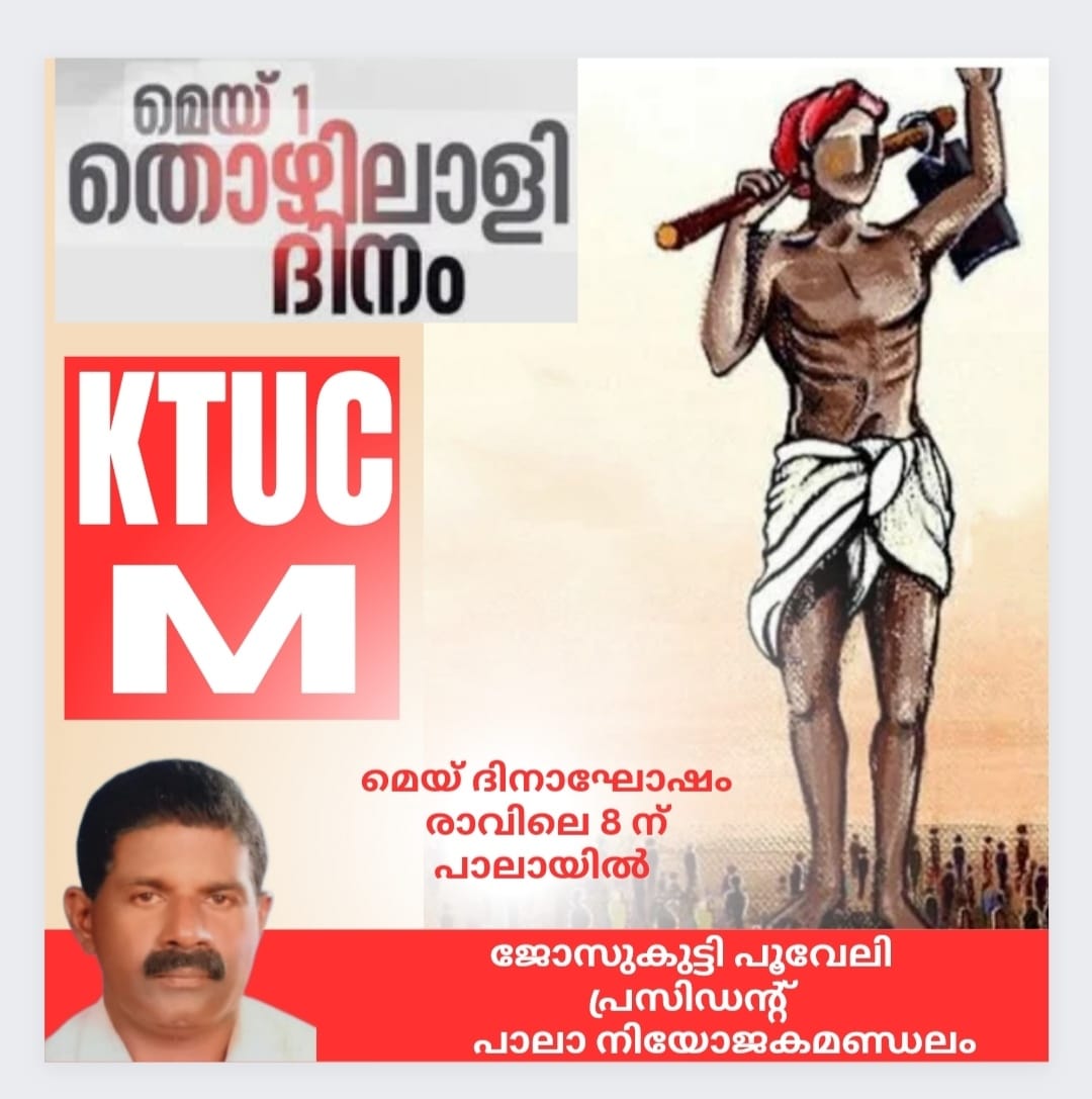 കെ. ടി. യു. സി (എം ) യൂണിയന്റെ ആഭിമുഖ്യത്തിൽ മെയ്ദിനാഘോഷം പാലായിൽ നടത്തപ്പെടുന്നു. മെയ് ഒന്നാം തീയതി ബുധനാഴ്ച രാവിലെ 8.30 ന് കെ. ടി. യു. സി (എം ) പാലാ നിയോജകമണ്ഡലം പ്രസിഡന്റ് ജോസുകുട്ടി പൂവേലിൽപാലായിൽ പതാക ഉയർത്തുകയും മധുര പലഹാരം വിതരണം നടത്തുകയും ചെയ്യും.