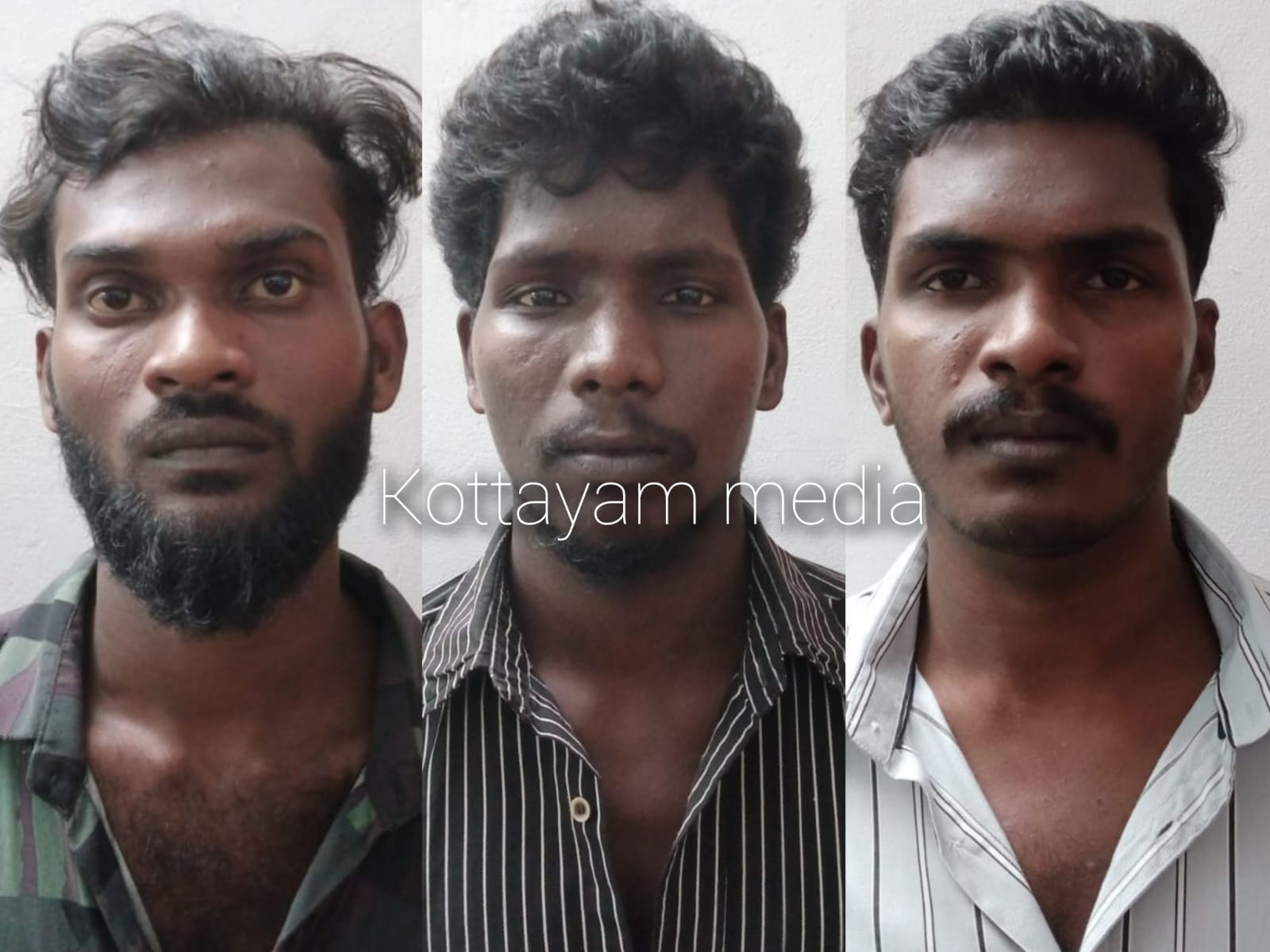 അയർക്കുന്നം സ്റ്റേഷൻ എസ്.ഐ സുജിത്കുമാർ, സുരേഷ് എ.കെ, സാജു.റ്റി.ലൂക്കോസ്, സി.പി.ഓ മാരായ ബിനു.എസ്, ശ്രീജിത്ത് കെ.കെ, രാഹുൽ ശശി എന്നിവർ ചേർന്നാണ് ഇവരെ അറസ്റ്റ് ചെയ്തത്. കോടതിയിൽ ഹാജരാക്കിയ മൂവരെയും റിമാൻഡ് ചെയ്തു.