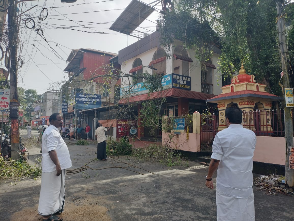 ആദ്യ ഘട്ടത്തിൽ കുറെ ശിഖരങ്ങൾ നീക്കം ചെയ്തെങ്കിലും.മഴ തടസ്സമായതിനെ തുടർന്ന് ജോലികൾ നിർത്തി വയ്ക്കുകയായിരുന്നു .എന്നാൽ ഇന്ന് മാനം തെളിഞ്ഞപ്പോൾ ആൽമരത്തിന്റെ അപകടകരമായ ശിഖരങ്ങൾ വെട്ടി മാറ്റുകയായിരുന്നു.നഗരപിതാവ് ഷാജു വി തുരുത്തൻ.ജോസുകുട്ടി പൂവേലി എന്നിവർ നേതൃത്വം നൽകി.