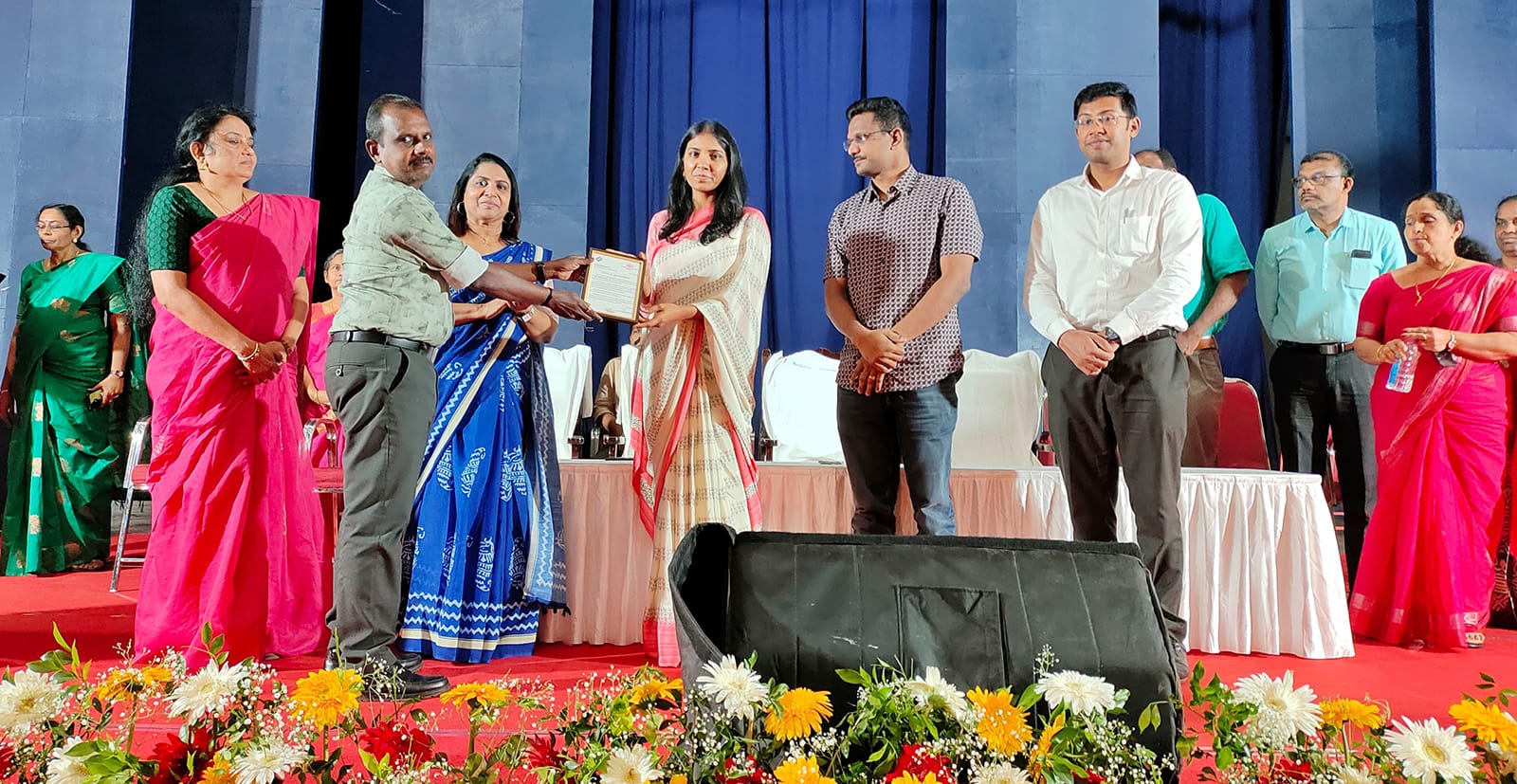 ഫോട്ടോക്യാപ്ഷൻ: കോട്ടയം ജില്ലയിൽ ലോക്‌സഭാ തെരഞ്ഞെടുപ്പിന്റെ വിജയകരമായ നടത്തിപ്പിന് സഹകരിച്ച ജീവനക്കാരെ അനുമോദിക്കാൻ മാമ്മൻ മാപ്പിള ഹാളിൽ യോഗത്തിൽ ജില്ലാ കളക്ടർ വി. വിഗ്‌നേശ്വരി ഡെപ്യൂട്ടി കളക്ടർ സജികുമാറിന് പ്രശംസാപത്രം കൈമാറുന്നു.