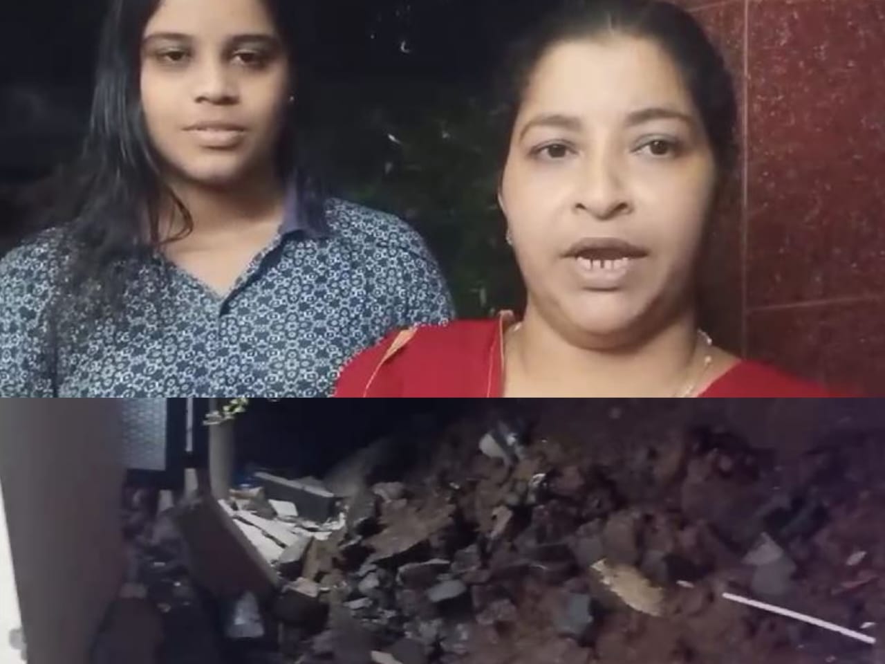 പാലാ ടൗണിൽ വീടിന് മുകളിലേയ്ക്ക് മതിലിഞ്ഞ് വീണു അത്ഭുതകരമായി രക്ഷപ്പെട്ട് വിദ്യാർത്ഥിനി