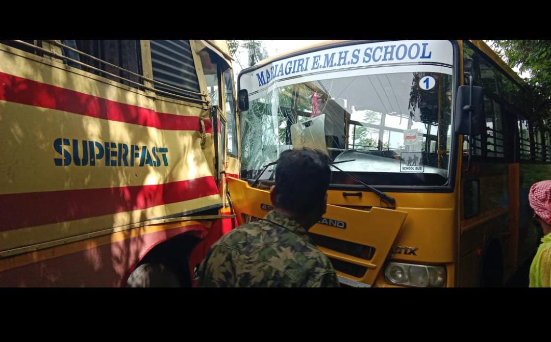 ഇടുക്കി: എലപ്പാറ – വാഗമൺ റോഡിൽ ബോണാമിക്ക് സമീപം കട്ടപ്പനയിൽ നിന്ന് കോഴിക്കോട്ടേക്ക് പോയ സൂപ്പർ ഫാസ്റ്റ് ബസ്സും വാഗമണ്ണിൽ നിന്നും വന്ന മരിയഗിരി സ്കൂൾ ബസ്സും തമ്മിൽ കൂടിയിടിച്ച് 15 വിദ്യാർത്ഥികൾക്ക് പരിക്കേറ്റു.