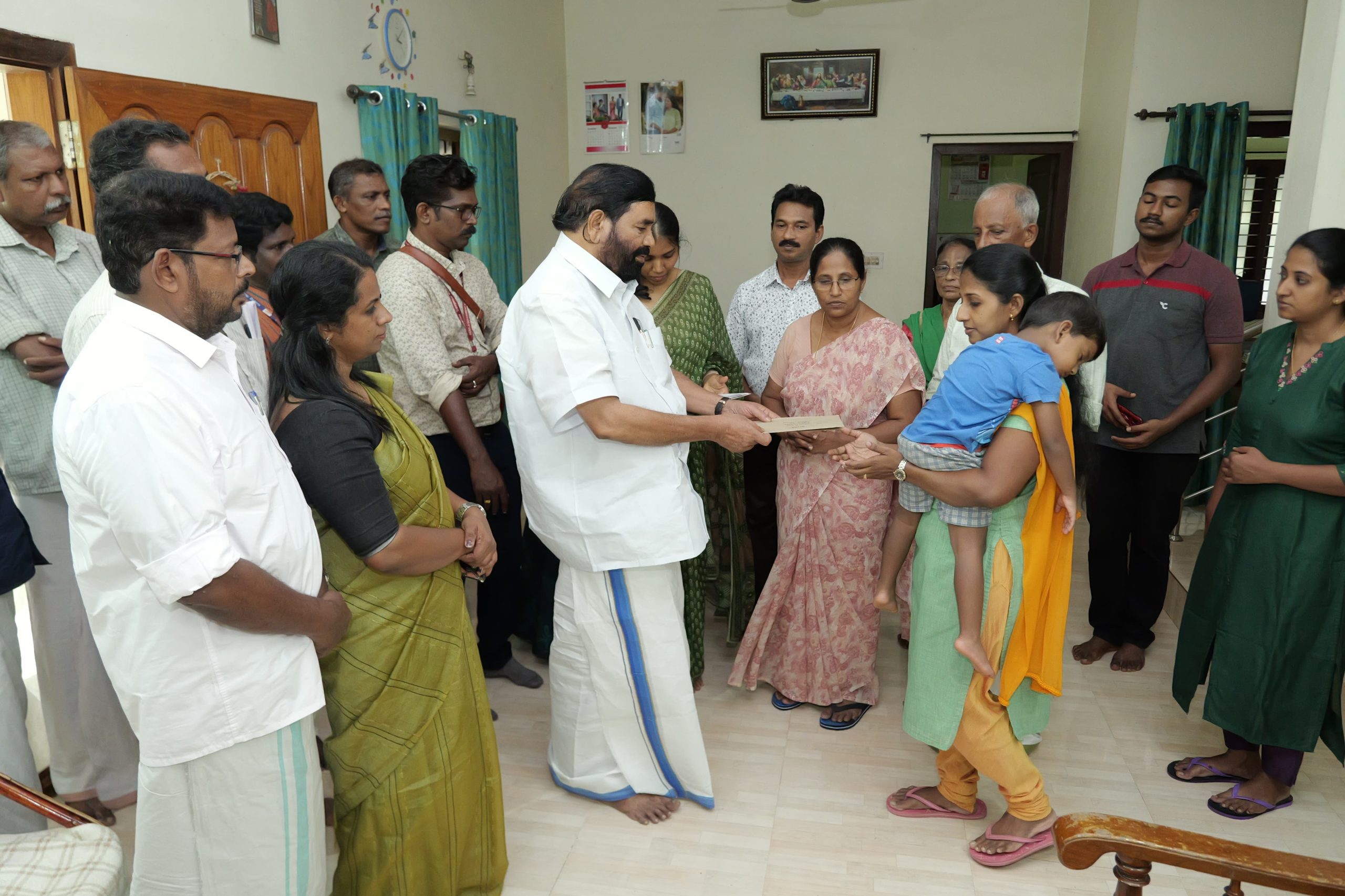 സർക്കാർ സഹായമായി 5 ലക്ഷം, വ്യവസായി യൂസഫ് അലി നൽകിയ 5 ലക്ഷം, ഫെഡറേഷൻ ഓഫ് കേരള അസോസിയേഷൻ ഇൻ നോർത്ത് അമേരിക്ക (ഫൊക്കാന) നൽകിയ 2 ലക്ഷം, വ്യവസായി രവി പിള്ള നൽകിയ 2 ലക്ഷം രൂപയുമാണ് കൈമാറിയത്. ജില്ലാ കളക്ടർ വി. വിഗ്നേശ്വരി,