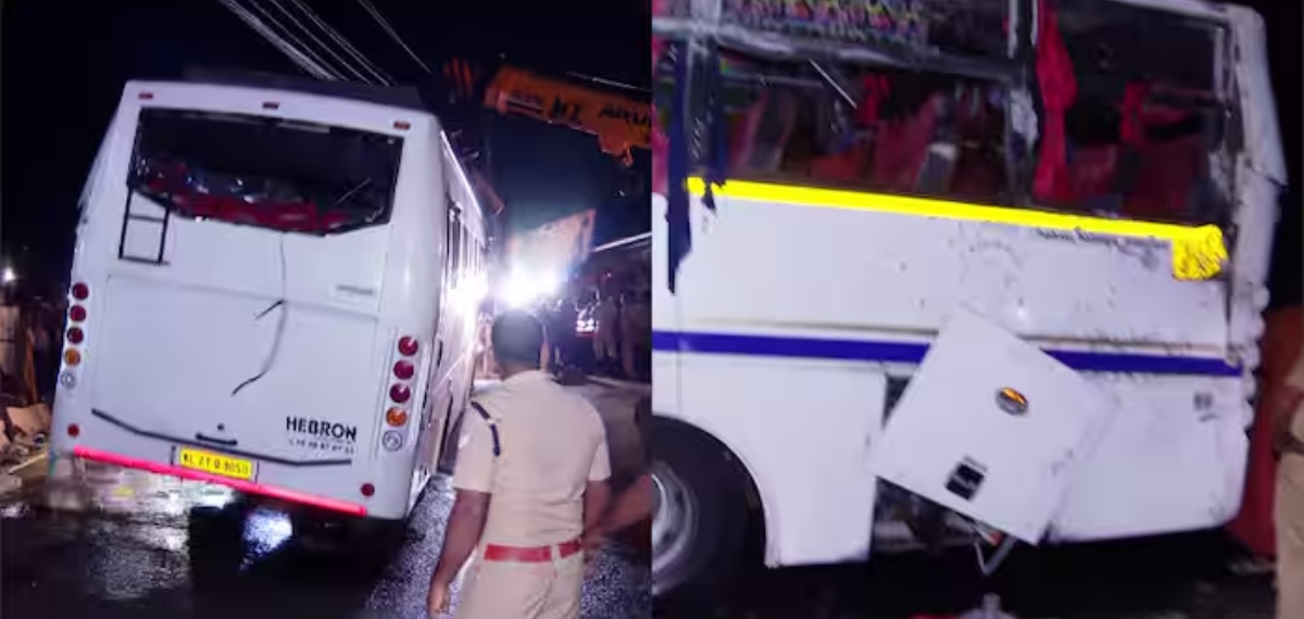 ജനുവരി ഒന്പതാം തിയ്യതി ഉയര്ന്ന ശബ്ദത്തില് പാട്ട് വെച്ച് അമിതവേഗതയില് യാത്ര നടത്തിയതിനും തിരുവനന്തപുരം ആര്ടിഒ പിഴ ഈടാക്കിയിരുന്നു. നിയമലംഘനത്തിന്റെ രേഖകള് റിപ്പോര്ട്ടറിന് ലഭിച്ചു. വെള്ളിയാഴ്ച രാത്രി നെടുമങ്ങാട് വെച്ചുണ്ടായ അപകടത്തില് ബസിന്റെ ഡ്രൈവറെ കസ്റ്റഡിയിലെടുത്തിട്ടുണ്ട്. ഒറ്റശേഖരമംഗലം സ്വദേശി ഡ്രൈവര് അരുള് ദാസ് ആണ് കസ്റ്റഡിയില് ആയത്. സംഭവ സ്ഥലത്ത് നിന്നും ഡ്രൈവര് രക്ഷപ്പെടുകയായിരുന്നു.