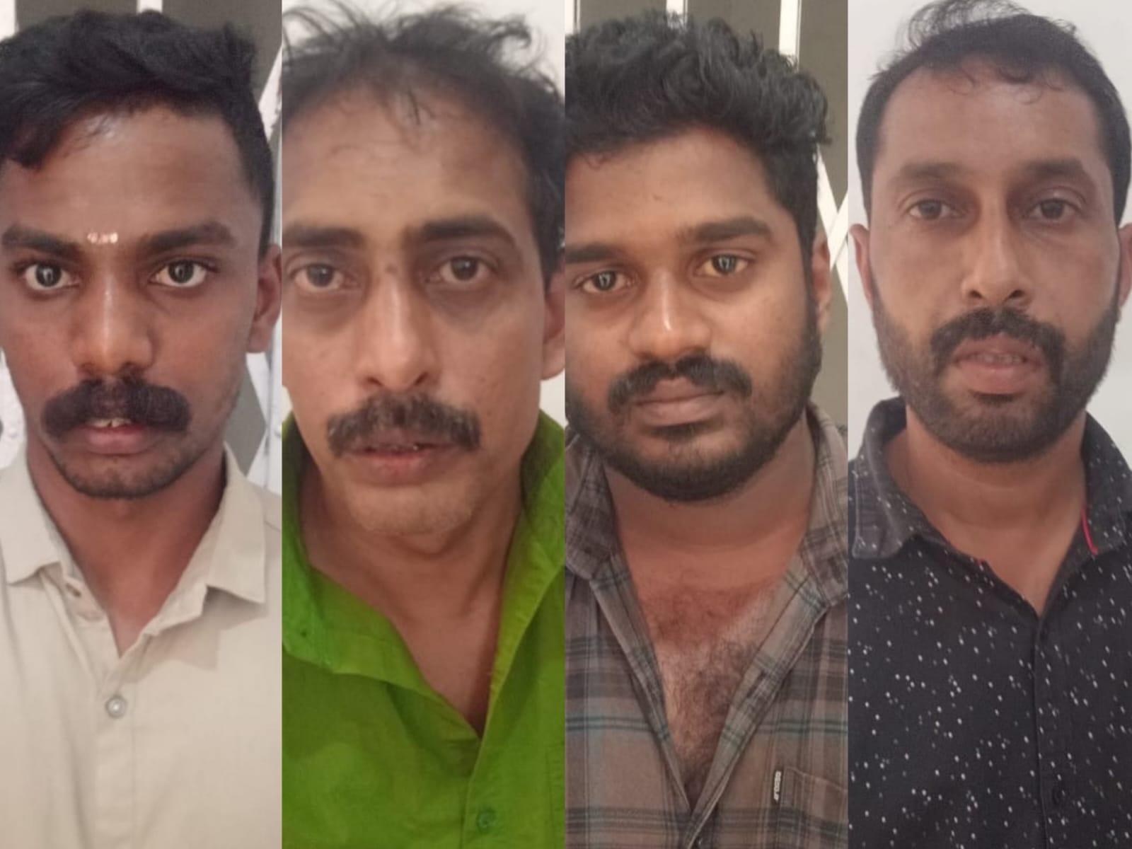 പാമ്പാടി: യുവാവിനെ വീട്ടിൽ കയറി ആക്രമിച്ച കേസിൽ നാല് പേരെ പോലീസ് അറസ്റ്റ് ചെയ്തു. പുതുപ്പള്ളി കൈതേപ്പാലം എട്ടുമാണിക്കടവ് ഭാഗത്ത് മേലോട്ടുപറമ്പിൽ വീട്ടിൽ കൊച്ചുമോൻ (40),പുതുപ്പള്ളി കൈതേപ്പാലം എട്ടുമാണിക്കടവ് ഭാഗത്ത് അയ്യകുന്നേൽ വീട്ടിൽ സുജിത്ത് സുമോദ് (28), പുതുപ്പള്ളി കൈതേപ്പാലം എട്ടുമാണിക്കടവ് ഭാഗത്ത് സരോവരം വീട്ടിൽ ബിജു. കെ (44), കോട്ടയം വേളൂർ ചാത്തംപടത്തിൽ വീട്ടിൽ ആദർശ് (28) എന്നിവരെയാണ് പാമ്പാടി പോലീസ് അറസ്റ്റ് ചെയ്തത്.