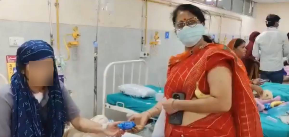 രാജസ്ഥാനിലെ ജയ്പൂരിലെ ആർയുഎച്ച്എസ് ആശുപത്രിയിലാണ് സംഭവം. ബിജെപി സംഘടിപ്പിച്ച സന്നദ്ധസേവന കാംപെയിനായ ബിജെപി സേവ പഖ് വാഡയുടെ ഭാഗമായാണ് നേതാക്കൾ ആശുപത്രിയിലെത്തിയത്.