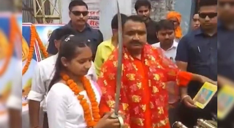 പെണ്‍കുട്ടികള്‍ക്ക്‌ വാളുകള്‍ വിതരണം ചെയ്‌ത്‌ ബിജെപി എംഎല്‍എ