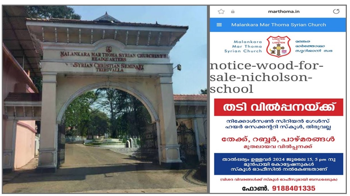 തിരുവല്ല – മഞ്ഞാടിയിൽ സ്ഥിതി ചെയ്യുന്ന നിക്കോൾസൺ ഹയർ സെക്കൻഡറി സ്കൂളിന്റെ പറമ്പിലെ മരങ്ങൾ വെട്ടി വിൽക്കാനുള്ള ടെൻഡർ ക്ഷണിച്ചു കൊണ്ട് സഭയുടെ ഔദ്യോഗിക വെബ്സൈറ്റിൽ പരസ്യം നൽകിയിട്ടുണ്ട്. ജൂലൈ 15ന് മുമ്പായി ക്വട്ടേഷൻ നൽകണമെന്നാണ് പരസ്യം.