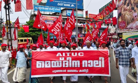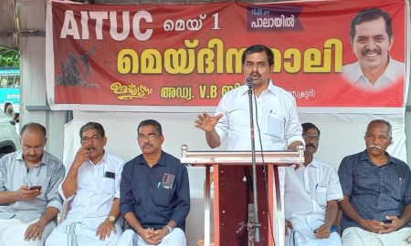 പാലാ.ഇന്ത്യയിലെ തൊഴിലാളികൾ നിരവധി ഐതിഹസിക പോരാട്ടങ്ങളിലൂടെ നേടിയെടുത്ത അവകാശങ്ങൾ കുത്തക മുതലാളിമാർക്കുവേണ്ടി ഇല്ലായ്മ ചെയ്യുന്ന കേന്ദ്ര സർക്കാർ തൊഴിലാളികളെ നികൃഷ്ട ജീവിവികളായണ് കാണുന്നതെന്ന് എ ഐ റ്റി യു സി...