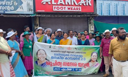 കാഞ്ഞിരപ്പള്ളി : കേരളം മുഴുവന് മാലിന്യമുക്തമായി പ്രഖ്യാപിക്കുന്നതിന്റെ ഭാഗമായി കാഞ്ഞിരപ്പള്ളി ബ്ലോക്ക് പഞ്ചായത്തിന്റെ കീഴിലുള്ള മണിമല, കാഞ്ഞിരപ്പള്ളി, പാറത്തോട്, മുണ്ടക്കയം, കൂട്ടിക്കല്, കോരുത്തോട്, എരുമേലി എന്നീ 7 പഞ്ചായത്തുകളിലൂടെ ശുചിത്വസന്ദേശ...