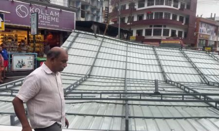 കനത്ത മഴയിലും കാറ്റിലും തൃശൂര് നഗരത്തില് നടുറോഡിലേക്ക് കൂറ്റന് ഇരുമ്പ് മേല്ക്കൂര വീണു. മുനിസിപ്പല് ഓഫീസ് റോഡിലെ നാലുനില കെട്ടിടത്തിന് മുകളില് നിന്നാണ് മേല്ക്കൂര റോഡിലേക്ക് വീണത്. അപകടത്തിന്റെ സി...