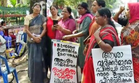 തിരുവനന്തപുരം: ഓണറേറിയം വർധിപ്പിക്കുക, വിരമിക്കൽ ആനുകൂല്യം നൽകുക, തുടങ്ങിയ ആവശ്യങ്ങൾ ഉന്നയിച്ച് 10 മുതലാണ് സെക്രട്ടറിയേറ്റിന് മുന്നിൽ ആശ വർക്കർമാർ രാപ്പകൽ സമരം തുടങ്ങിയത്. സമരത്തിന് ഐക്യദാർഢ്യം പ്രഖ്യാപിച്ച് മഹിള...