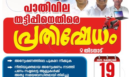 പൂഞ്ഞാർ : പാതിവിലതട്ടിപ്പ് കേസിൽ പണം നഷ്ടപ്പെട്ടവർക്ക് സമയബന്ധിതമായി പണം തിരികെ നൽകുന്നതിനുള്ള നടപടി സ്വീകരിക്കുക, തട്ടിപ്പിന്റെ വിഹിതം കൈപ്പറ്റിയിട്ടുള്ള എല്ലാ വ്യക്തികളും രാഷ്ട്രീയപ്രസ്ഥാനങ്ങളും പണം തിരികെ നൽകുക, അന്വേഷണത്തിലെ...
