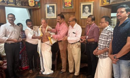 ഇലഞ്ഞി :-നവതി കൊണ്ടാടുന്ന ശ്രീധരീയം ചെയർമാൻ ശ്രീ നാരായണൻ നമ്പൂതിരിയെ വിസാറ്റ് ഗ്രൂപ്പ് ഓഫ് ഇൻസ്റ്റിറ്റ്യൂഷൻസ് ആദരിച്ചു.ശ്രീനാരായണൻ നമ്പൂതിരി മക്കളായ രാജൻ നമ്പൂതിരി, ഹരി നമ്പൂതിരി മറ്റു കുടുംബാംഗങ്ങൾ എന്നിവർ...