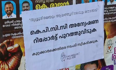 തൃശൂർ: ജില്ലയിലെ കോൺഗ്രസ്സിൽ വീണ്ടും പോസ്റ്റർ യുദ്ധം മുറുകുന്നു. ഡിസിസി പരിസരത്തും നഗരത്തിലും ലോക്സഭാ തിരഞ്ഞെടുപ്പിലെ തോൽവി പരാമർശിച്ച് വീണ്ടും പോസ്റ്റർ പ്രത്യക്ഷപ്പെട്ടു. തൃശ്ശൂരിലെയും ആലത്തൂരിലെയും തോൽവി പരിശോധിക്കുന്ന കെപിസിസി...