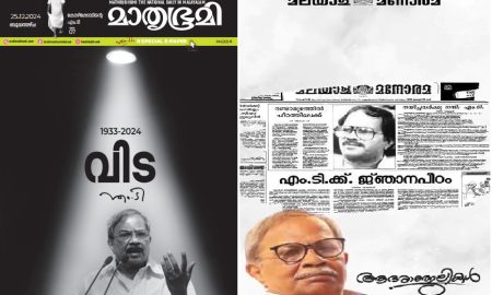 എംടി വാസുദേവൻ നായരുടെ മരണം മുന്നിൽകണ്ട് ചരമക്കുറിപ്പുകൾ തയ്യാറാക്കിവച്ച പത്രങ്ങൾ അവ പുറത്തുവിടാനാകാത്ത തത്രപ്പാടിൽ. ക്രിസ്മസ് കാരണം ഓഫീസുകൾ അവധി ആയിരുന്നതിനാൽ ഇന്ന് പത്രമിറക്കാൻ കഴിയില്ല എന്നത് തന്നെ പ്രശ്നം....