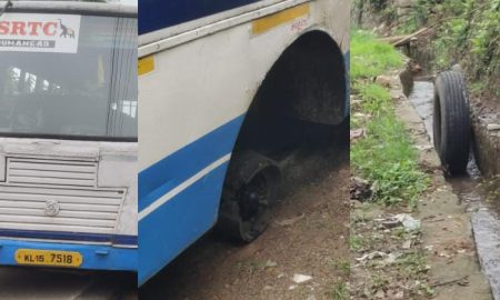 തിരുവനന്തപുരം നെടുമങ്ങാട് എട്ടാംകല്ലിൽ ഓടിക്കൊണ്ടിരുന്ന കെഎസ്ആർടിസി ബസിന്റെ ടയർ ഊരിത്തെറിച്ചു. ബസിൽ 4 യാത്രക്കാർ ഉണ്ടായിരുന്നു. ഡ്രൈവറുടെ സമയോജിതമായ ഇടപെടലിലൂടെ വൻ ദുരന്തം ഒഴിവായി. ബസിന്റെ മുന്നിലെ ഇടതുവശത്തെ ടയറാണ്...