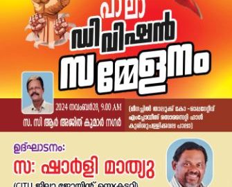 പാലാ :കെ എസ് ഇ ബി വർക്കേഴ്സ് അസോസിയേഷൻ (CITU) 28-ാം സംസ്ഥാന സമ്മേളനത്തിന് മുന്നോടിയായി പാലാ ഡിവിഷൻ സമ്മേളനം 2024 നവംബർ 28 വ്യാഴാഴ്ച ചേരുകയാണ്. സ: സി...
