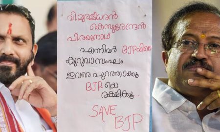 കോഴിക്കോട്: പടലപ്പിണക്കങ്ങള് ശക്തമായതോടെ ബിജെപി നേതൃത്വത്തിനെതിരെ കോഴിക്കോട് നഗരത്തില് പോസ്റ്ററുകള്. സേവ് ബിജെപി എന്ന തലക്കെട്ടോടെയാണ് നഗരത്തില് പോസ്റ്ററുകള് പ്രത്യക്ഷപ്പെട്ടത്. ബിജെപിയില് കുറുവാ സംഘമുണ്ടെന്നാണ് ആരോപണം. വി മുരളീധരന്, കെ...
