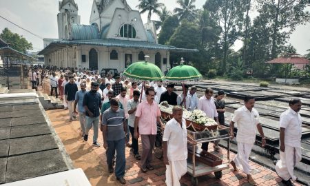 പാലാ :പുതിയ ഭവനം പണിയണമെന്ന് ആഗ്രഹം ബാക്കി വച്ച് നിത്യതയുടെ പുതിയ ഭവനത്തിൽ പ്രവേശിച്ച ആനിത്തോട്ടത്തിൽ സ്കറിയാച്ചന്റെ സംസ്ക്കാര ശുശ്രുഷയിൽ പങ്കെടുക്കാനെത്തിയത് ആയിരങ്ങൾ .ഇന്നലെയും ഇന്നുമായി ആയിരങ്ങളാണ് പരേതന് ആദരാഞ്ജലി...