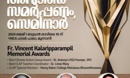കോട്ടയം :മീനച്ചിൽ നദീസംരക്ഷണ സമിതി സ്കൂൾ, കോളേജ് തലത്തിൽ ഏകോപിപ്പിക്കുന്ന ക്ലൈമറ്റ് ആക്ഷൻ ഗ്രൂപ്പുകളിൽ മികച്ച പ്രവർത്തനം കാഴ്ച്ചവയ്ക്കുന്നവയ്ക്കുള്ള ഫാ. വിൻസൻ്റ് കളരിപ്പറമ്പിൽ മെമ്മോറിയൽ പുരസ്കാര സമർപ്പണവും പരിശീലനപരിപാടിയും സെമിനാറും...