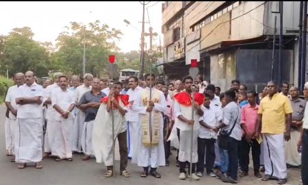 പാലാ : ളാലം സെന്റ് മേരീസ് പഴയപള്ളിയും ളാലം സെൻ്റ് ജോർജ് പുത്തൻ പള്ളിയും സംയുക്തമായി നേതൃത്വം നല്കുന്ന നഗരം ചുറ്റിയുള്ള 69-ാമത് കുരിശിന്റെ വഴിയും ഈശോയുടെ കബറടക്കരൂപം...
