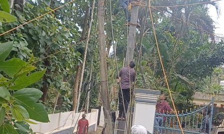 പാലാ:- ജോസ് ജംഗ്ഷനിൽ നിന്നും ചെത്തിമറ്റത്തേക്ക് പോകുന്ന വഴിയിൽ ബിജു മണർകാട്ടിന്റെ വീടിനുമുമ്പിൽ അപകടാവസ്ഥയിൽ ഏതാണ്ട് വട്ടം ഒടിഞ്ഞ അവസ്ഥയിൽ ഇരുന്നിരുന്ന 7/18/3-ാം നമ്പർ ഇലക്ട്രിക് പോസ്റ്റ്, മാർത്തോമാ ചർച്ച്...