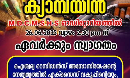 മേലുകാവ് പഞ്ചായത്തിൽ ചാലമറ്റം കേന്ദ്രമായി പ്രവർത്തിക്കുന്ന ഐശ്വര്യ റെസിഡൻസ് വെൽഫെയർ അസോസിയേഷൻ ഈ വർഷത്തെ പ്രവർത്തനങ്ങളുടെ ഭാഗമായി മേലുകാവ് പഞ്ചായത്തിലെ വിവിധ സ്കൂളുകളിൽ ലഹരിവിരുദ്ധ ക്യാമ്പയിൻ നടത്തുവാൻ തീരുമാനിച്ചു. അതിന്റെ...