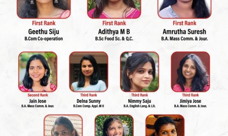 അരുവിത്തുറ :എംജി യൂണിവേഴ്സിറ്റി ബിരുദ പരീക്ഷകളിൽ വിവിധ വിഷയങ്ങളിൽ ഒന്നാം റാങ്കുകളുടെ കരുത്തുമായി അരുവിത്തുറ സെൻറ് ജോർജ് കോളേജിന്റെ മുന്നേറ്റം.ബികോം കോ-ഓ പ്പറേഷൻ വിഭാഗത്തിൽ കോളേജിലെ ഗീതു സിജു ഒന്നാം...