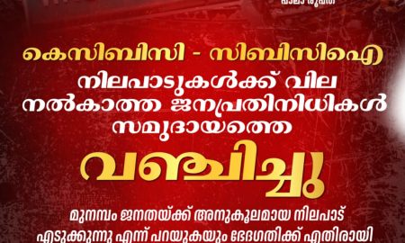 ജനപ്രതിനിധികൾ സമുദായത്തെ വഞ്ചിച്ചു: എസ്.എം.വൈ.എം. പാലാ രൂപത പാലാ : വഖഫ് ഭേദഗതിക്ക് അനുകൂലമായി വോട്ട് ചെയ്യാത്ത ജനപ്രതിനിധികൾ സമുദായത്തെയും, സമൂഹത്തെയും വഞ്ചിച്ചതായി പാലാ രൂപത യുവജനപ്രസ്ഥാനം എസ്.എം.വൈ.എം. –...